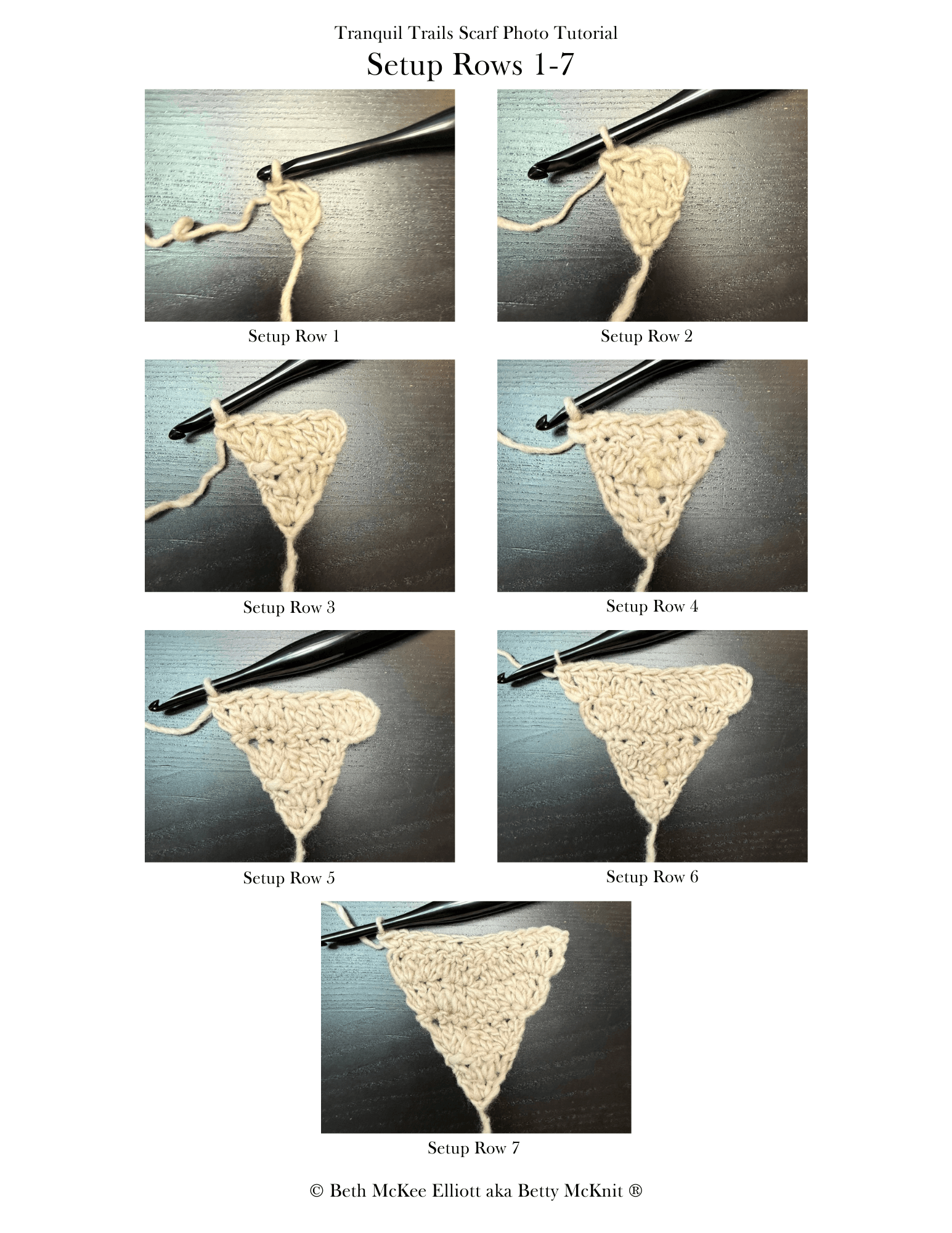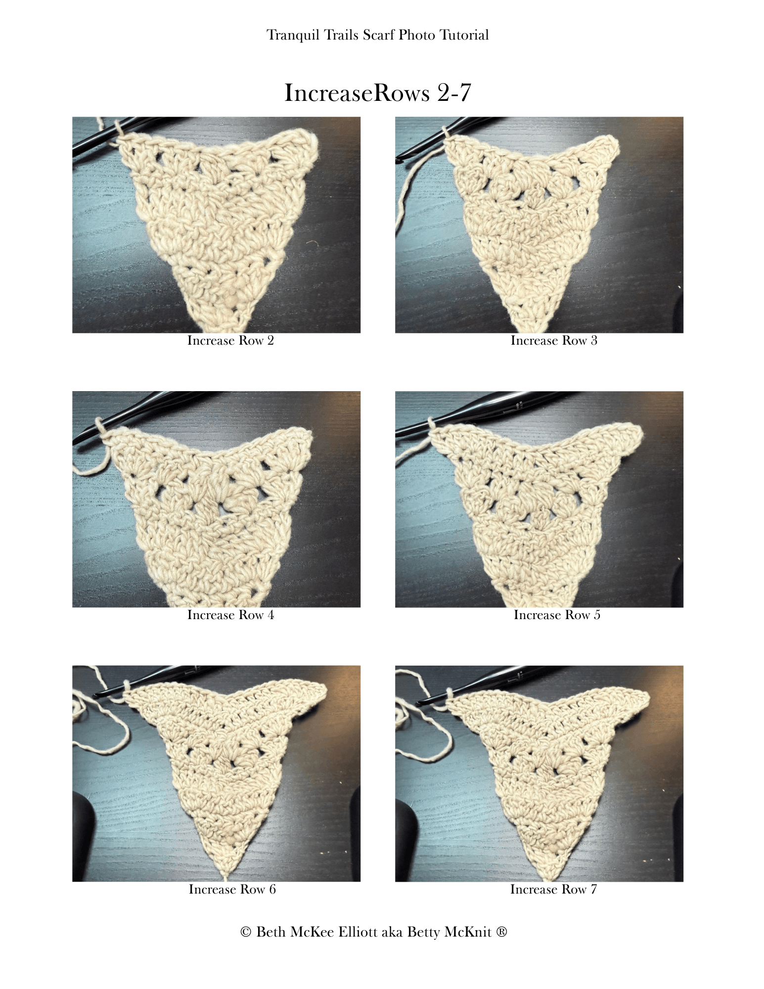This pattern is the intellectual property of Beth McKee Elliott aka Betty McKnit®. This pattern, The 6-Day Kid Blanket, 6-Day Crochet™, 6-Day Star Blanket™, and all derivative works are protected by copyright. Publishing translations, corrections, variations, or tutorials of this pattern, online or elsewhere without written permission from the owner is a violation of copyright.